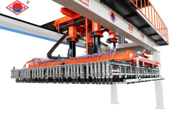 The full-automatic brick setting machine is formed by moving trestle , clamp plate , separator , lifting guide pillar , rail , hydraulic , system and electrial system ,etc.